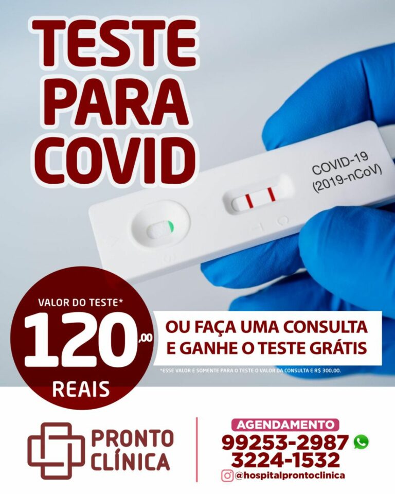 Com a nova onda de coronavĂrus no Acre, o Hospital Pronto ClĂnica realiza o teste de Covid-19 e oferece atendimento 24 horas. AlĂ©m da estrutura hospitalar de qualidade e corpo clĂnico pronto para atender os pacientes, a testagem para doença tambĂ©m estĂĄ sendo realizada pelo valor de R$120,00 durante o mĂȘs de novembro e dezembro.