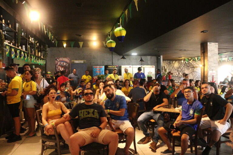 GALERIA: acreanos acompanham jogo da seleção no Tardezinha Por MATHEUS MELLO, DO CONTILNET 24/11/2022 Atualizado: há 3 anos COMPARTILHAR0SigaSiga Google Discover Acreanos assistem primeiro jogo da Seleção Brasileira na Copa do Mundo em programação especial no Tardezinha Grill, em Rio Branco.📲Participe do canal do ContilNet no InstagramToque para entrar e acompanhar as novidades Confira galeria de fotos do fotógrafo Gustavo Monteiro: Notícias relacionadas 16/04/2026 Repórter Alice Ribeiro tem morte encefálica confirmada após acidente 16/04/2026 Tião Maia renasce, vence o coração e ainda encontra um novo amor
