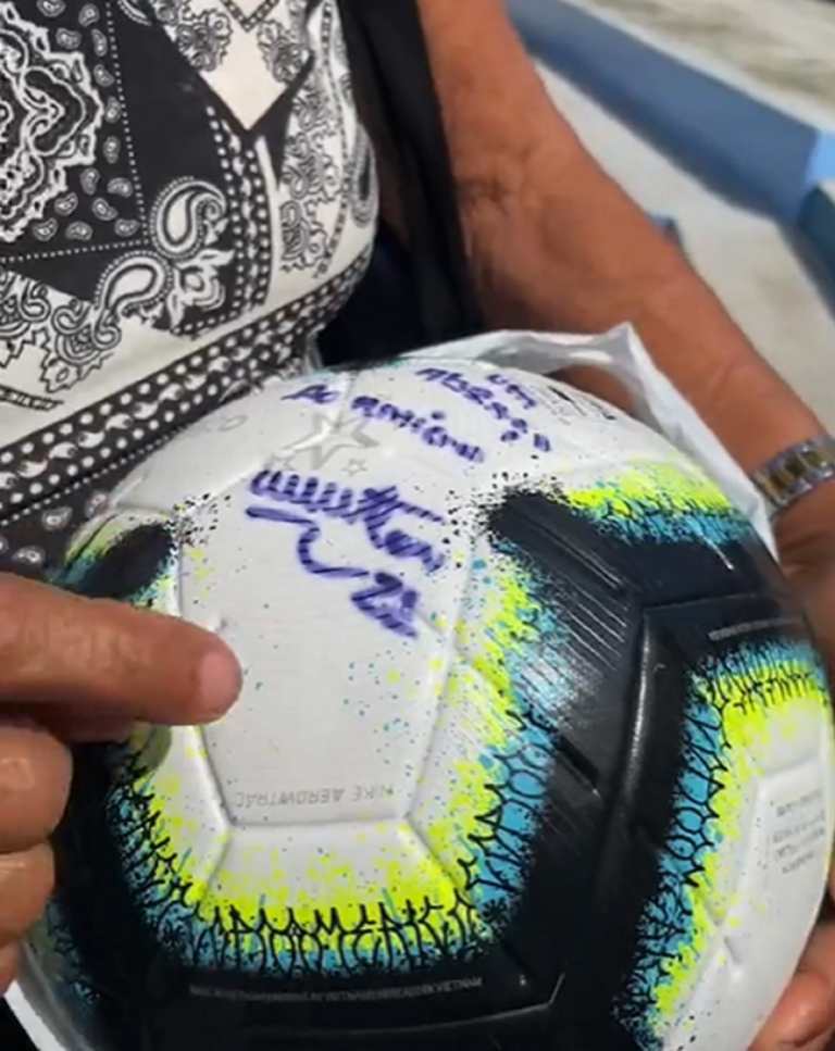 Dentre os torcedores, Luciene mostrou ao ContilNet uma das bolas que a torcedora afirma ter recebido em 2021 do goleiro Weverton Pereira, acreano convocado para a Seleção Brasileira na Copa do Mundo 2022.