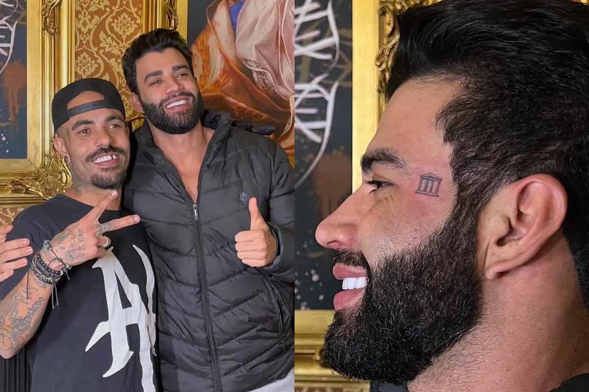 Nesta semana, Gusttavo Lima fez uma nova tatuagem em seu rosto. O cantor, que já tinha uma cruz, decidiu eternizar o símbolo de embaixador próximo à sobrancelha esquerda. O trabalho foi feito por Dan Tattoo, que conversou com a coluna LeoDias e deu detalhes.