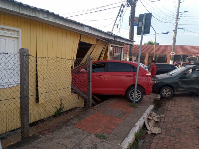 Um carro da marca Chery, de cor vermelho, colidiu contra a casa do proprietário do bar do Santinho, na tarde desta quinta-feira (8), na rua Isaura Parente, no bairro Bosque, em Rio Branco.