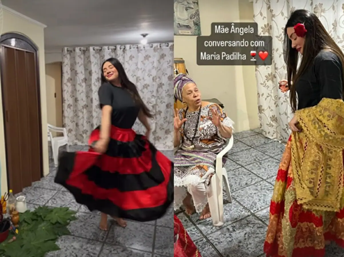 “Já que vocês adoram ver e são super curiosos, hoje a gente veio direto da academia aqui para o terreiro para fazer limpeza espiritual. Estou de roupinha apropriada. Gosto de compartilhar algumas coisas. É importante que as pessoas saibam para evitar a ignorância e, principalmente, a intolerância religiosa”, acrescentou.