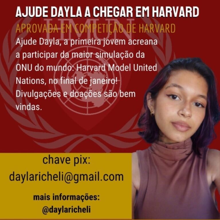 Dayla Rícheli Almeida Pereira, de 18 anos, é a primeira acreana a passar para o Harvard Model United Nation 2023 (HMUN), uma competição internacional que ocorre todos os anos em Boston, nos Estados Unidos.