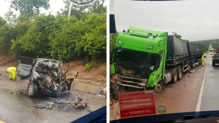 Duas pessoas morreram em um acidente envolvendo uma caminhonete e uma carreta, no km-723 da BR-163, em Coxim (MS), na manhã deste sábado (14).