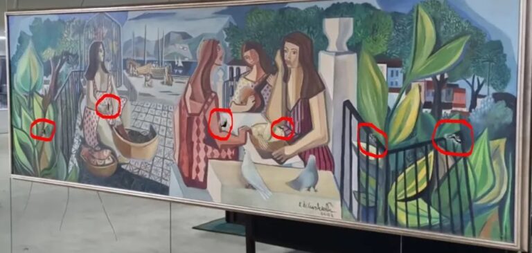 • Obra “As mulatas”, de Di Cavalcanti — a principal peça do Salão Nobre do Palácio do Planalto foi encontrada com sete rasgos, de diferentes tamanho. A obra é uma das mais importantes da produção de Di Cavalcanti. Seu valor está estimado em R$ 8 milhões, mas peças desta magnitude costumam alcançar valores até 5 vezes maior em leilões