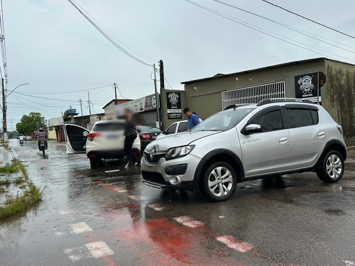 No início da tarde desta quinta-feira (16), dois carros colidiram em uma rua localizada no Conjunto Manoel Julião, em Rio Branco. Os carros são do modelo HRV, na cor branca, e Renault Sandero, na cor prata.
