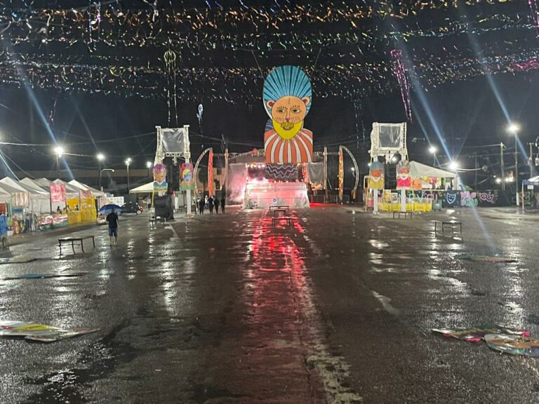 A segunda noite de folia, nesta sábado (18), foi marcada por uma forte chuva, que afastou os foliões do Carnaval da Família, no Arena da Floresta.
