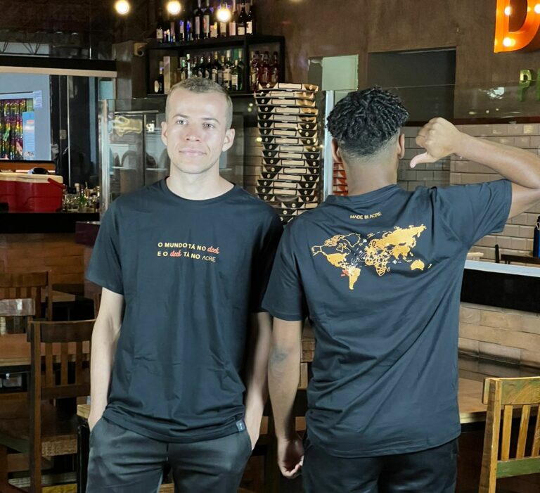 A parceria entre o Grupo Deck e a marca Made in Acre resultou numa coleção de camisetas bem “acreana do pé rachado”, como se diz pelo Acre. Essa é a primeira collab entre as marcas acreanas.