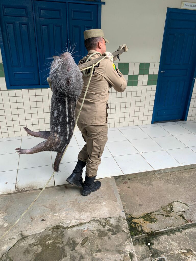 Nesta sexta-feira (03),foi capturada pelo Corpo de Bombeiros, na Escola de Ensino Primário Siqueira de Menezes em Sena Madureira, uma Pacarana ou Paca-de-rabo como também é conhecida.