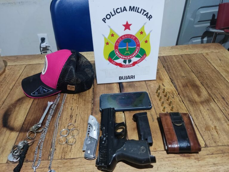 Uma guarnição da Polícia Militar do Acre (PMAC) prendeu no Bujari, no início da madrugada desta quarta-feira, 8, um homem de 24 anos com uma arma de fogo do tipo pistola, durante uma abordagem a suspeitos.