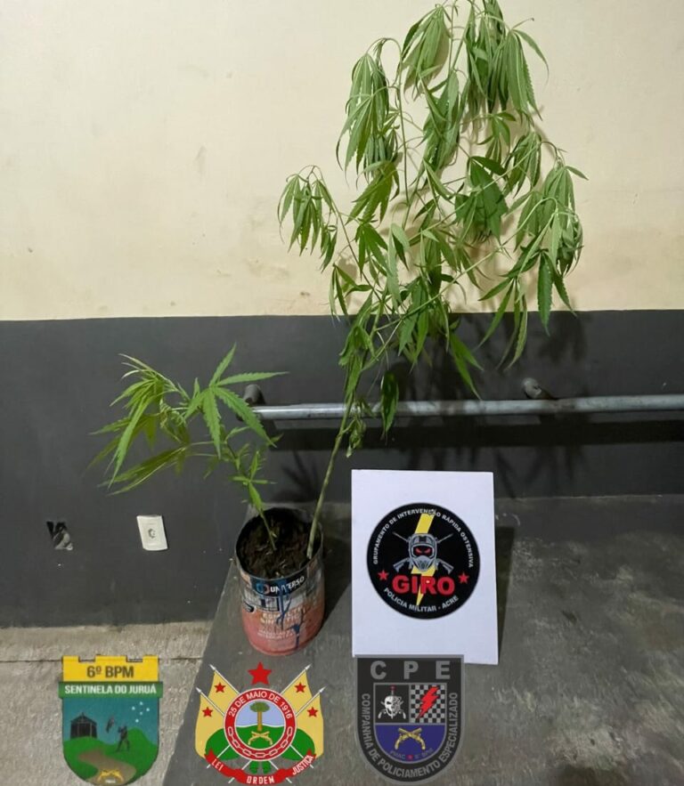 Na tarde desta sexta-feira (17), a equipe do Grupo de Intervenção Rápida Ostensiva (GIRO), da Polícia Militar do Acre (PMAC), apreendeu dois pés de maconha, que estavam sendo cultivados no fundo do quintal de uma residência em Cruzeiro do Sul. Um adolescente de 17 anos foi apreendido por ato infracional análogo ao crime de tráfico de drogas.