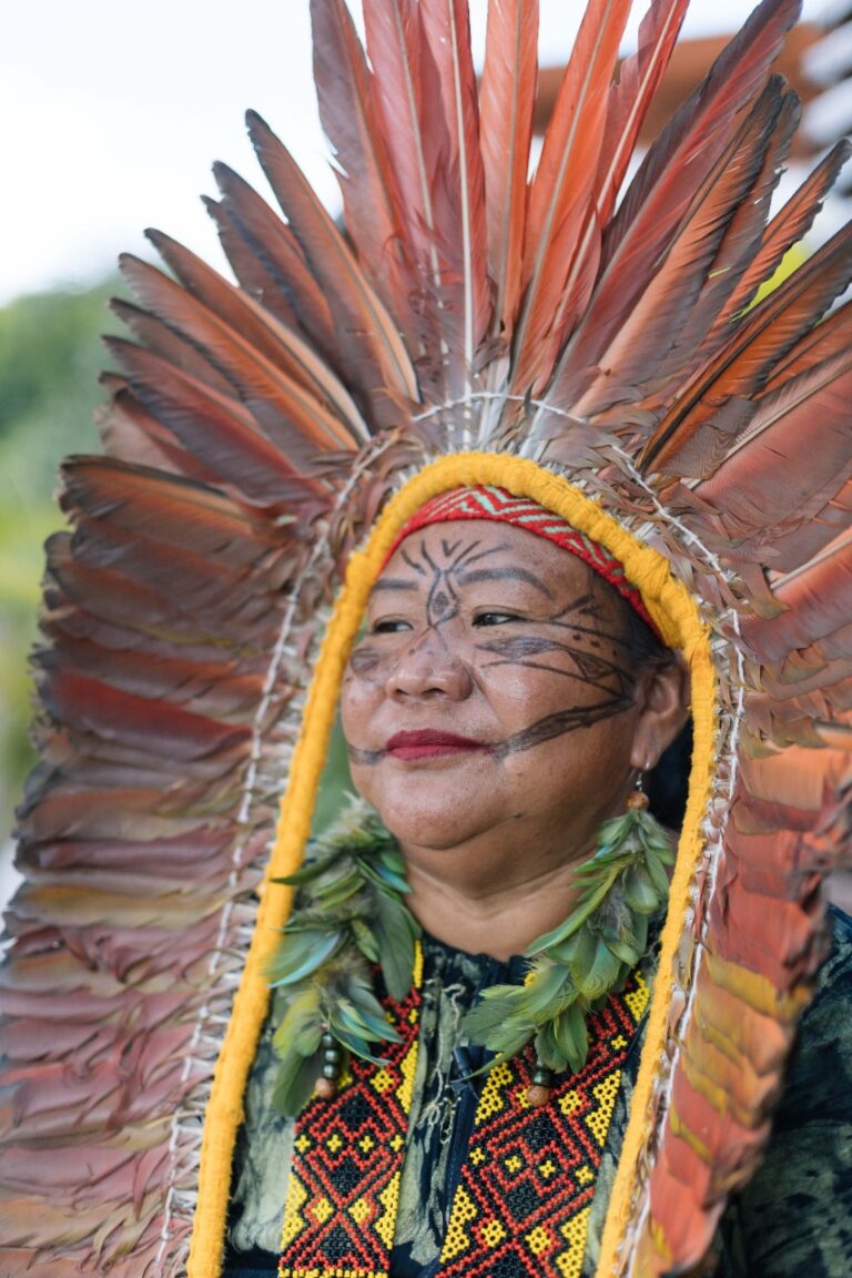Mesmo antes de assumir o posto ‘oficialmente’, Edina conta que já atuava como Cacica por indicação do seu povo, mas foi na cerimônia de passagem do cocar de seu pai, da maneira como ensina a tradição ancestral Shanenawa, que se emocionou ao finalmente se encarregar de cuidar da tribo.