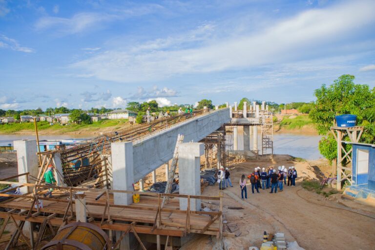 Além disso, Thalia destaca que, no lado oeste de Sena Madureira, as equipes estão trabalhando na concretagem da décima viga pré-moldada, do total de 20 vigas, que serão apoiadas no tabuleiro da ponte.