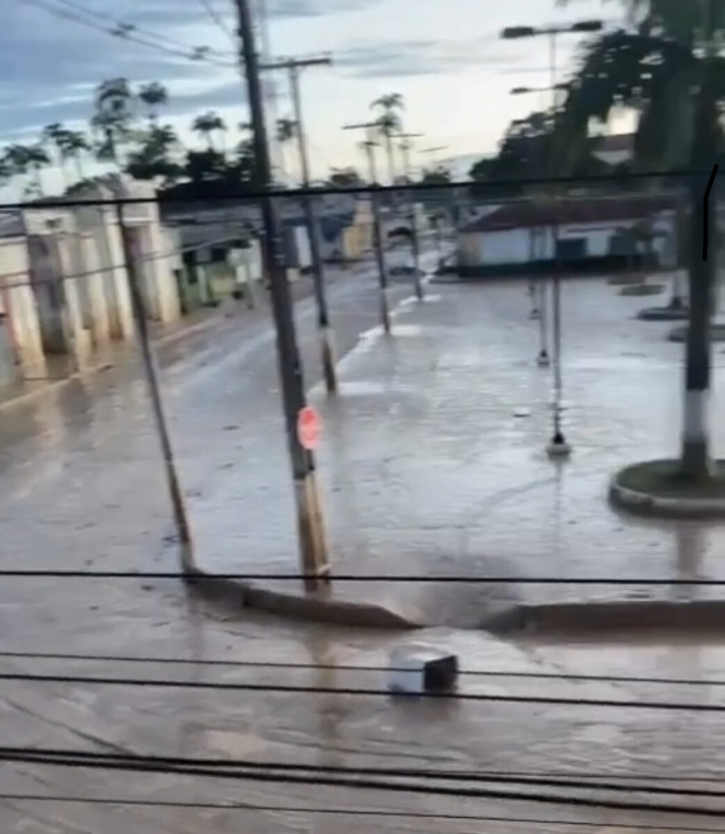 No vídeo divulgado pelo internauta Alexandre Thomazini, é possível ver o centro da cidade descoberto. As imagens foram feitas às 5h30 desta quinta-feira (30).