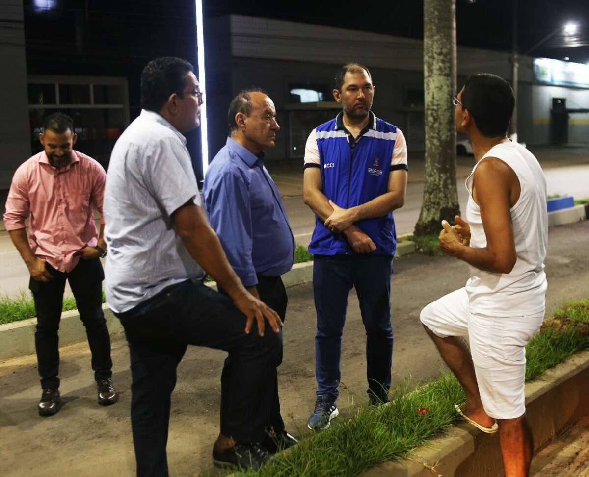 Cidade) e Cid Ferreira (Seinfra), que coordenam o andamento dos serviços. “Aqui já foram implantados canteiros, fizemos recapeamento central e estamos avançando na direção do Supermercado Arasuper e da Recol que é um trecho da ciclovia”, explicou Cid Ferreira.