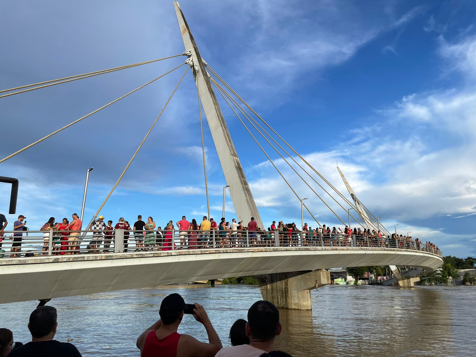 O transbordamento do Rio Acre virou atração para centenas de riobranquenses que aproveitaram a tarde deste domingo (2) para acompanhar a situação do afluente de cima da Passarela Joaquim Macedo.