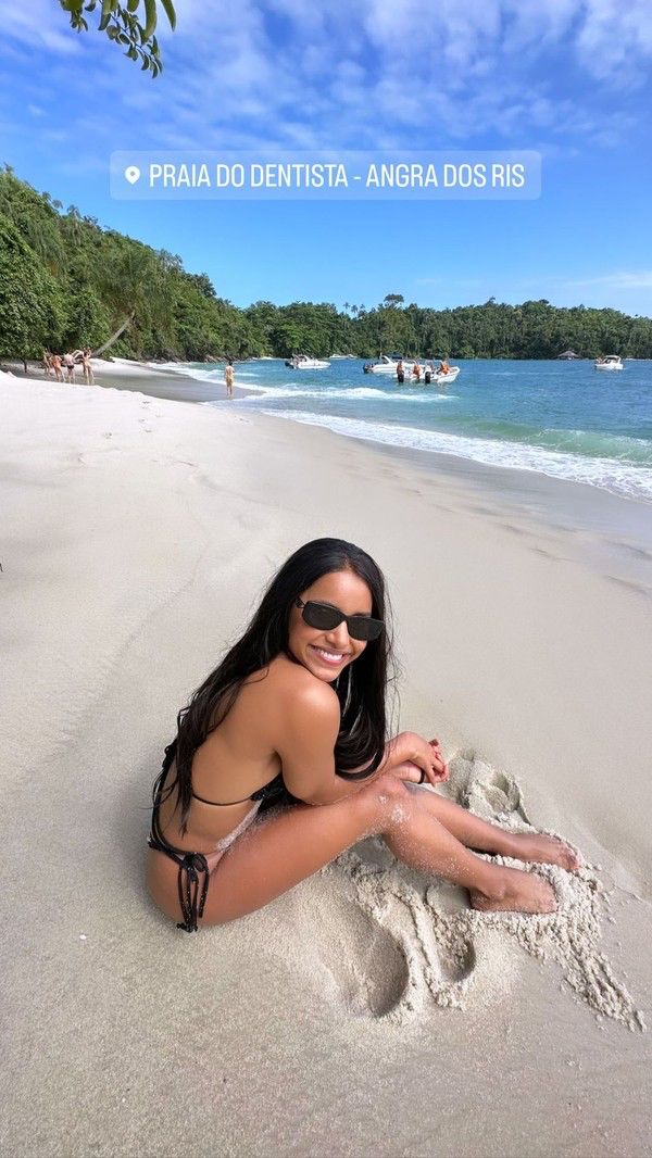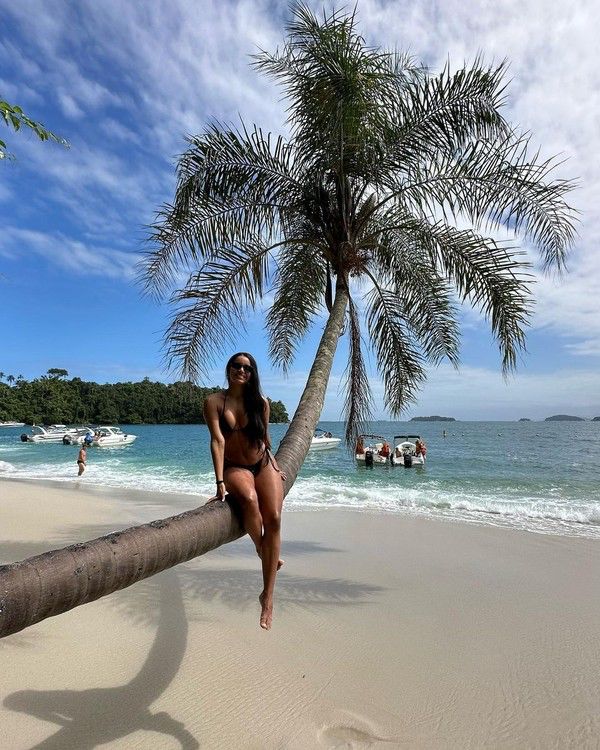Gleici Damasceno, de 28 anos de idade, compartilhou alguns registros, nesta segunda-feira (3), tirados na praia do Dentista, na Ilha de Gipóia, em Angra dos Reis, no Rio de Janeiro. “Só há uma coisa melhor do que a praia – e isso é mais praia!”, escreveu a atriz acreana ao posar para os cliques de biquíni e cabelão longo liso.