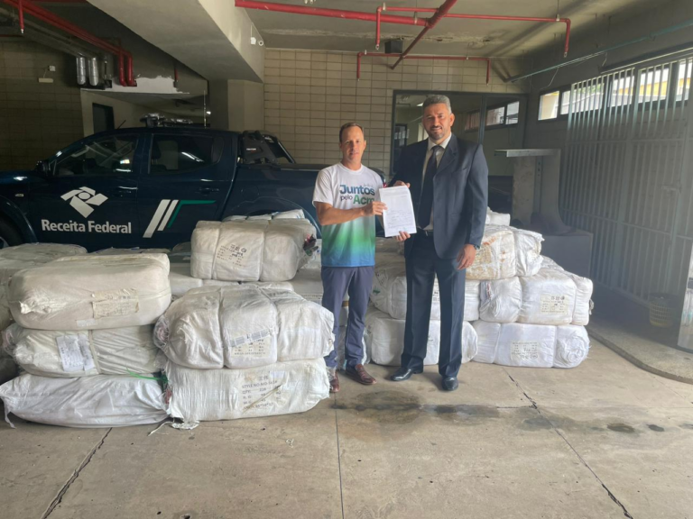 O Governo do Acre recebeu, na manhã da sexta-feira (15), a doação de 61 fardos de roupas da Receita Federal. Os itens farão parte da campanha Juntos pelo Acre e vão ser entregues às famílias atingidas pelas enchentes.