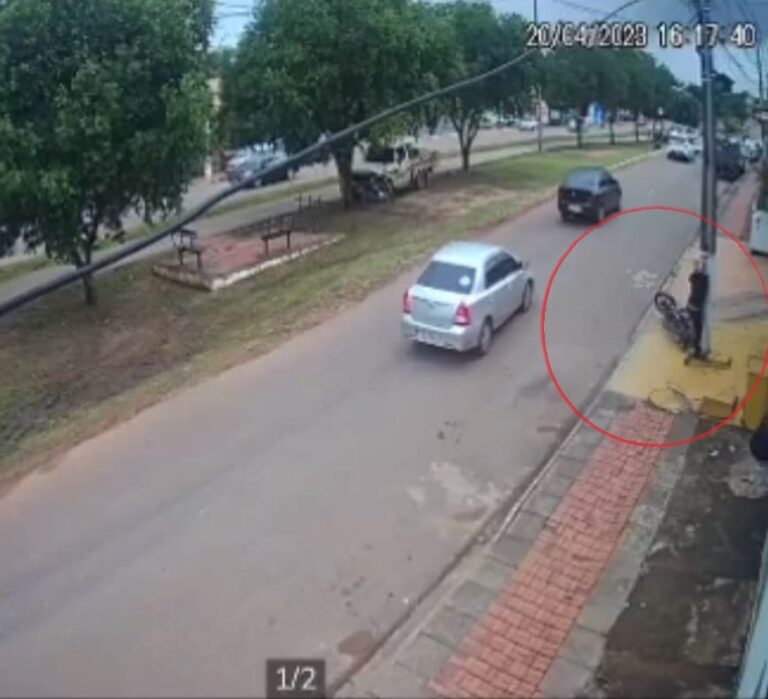 VÍDEO: câmeras flagram carro que jogou motociclista contra poste e fugiu sem prestar socorro no Acre