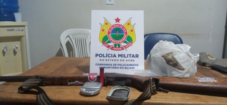 Uma guarnição de Rádio Patrulha da Companhia de Policiamento Comunitário do Bujari apreendeu na manhã desta segunda-feira (29), uma arma de fogo e uma balança de precisão. O fato ocorreu na Rua Buriti, bairro Açaí. Ninguém foi preso durante a ação policial.