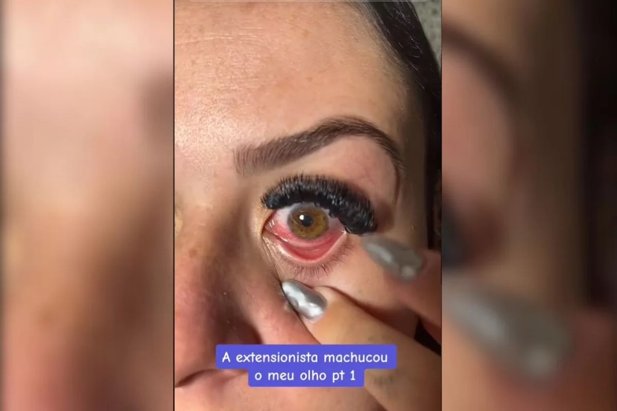 Na legenda do vídeo, ela alerta para a importância de pesquisar ao escolher um profissional para fazer a aplicação. “Vejam com qual extensionista vocês vão colocar os cílios. Sou a prova viva de que é algo extremamente perigoso”, aponta.