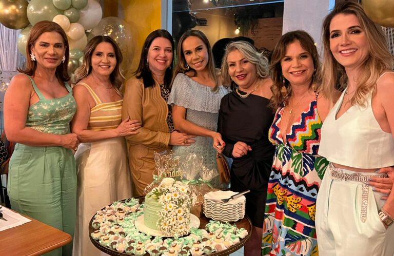 As amigas Márcia Abreu, Maria Helena, aniversariante, Mayra Tinoco, Cláudia Souza, Patrícia Rego e Carol Leite.image2