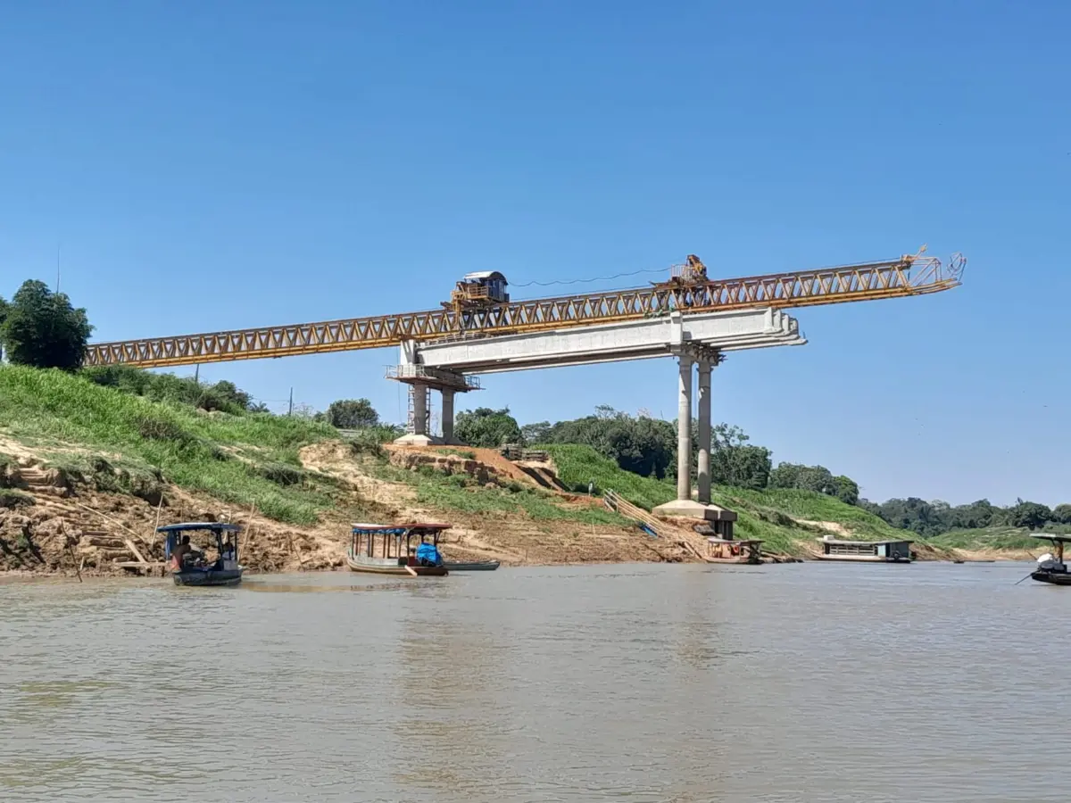 “Desmontamos a treliça lançadeira no lado do Centro da cidade e iniciamos a montagem do equipamento no lado do Segundo Distrito para, em breve, continuarmos o lançamento das vigas pré-moldadas da ponte sobre o Rio Iaco, em Sena Madureira”, afirmou.