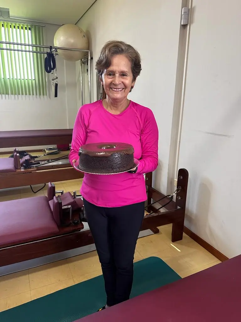 A funcionária pública aposentada Terezinha Mendes comemorou seu aniversário na última segunda-feira junto com os colegas de treino da Clínica e academia Espaço Vital.