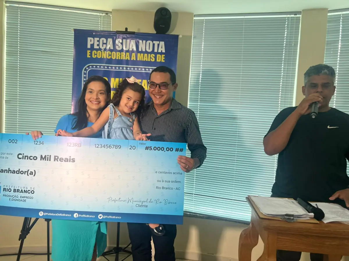 O primeiro sorteio aconteceu no último dia 1º de julho e puderam participar todas as pessoas que se inscreveram pela plataforma do programa que contrataram algum serviço no âmbito do município de Rio Branco. O primeiro prêmio é de R$ 10 mil e de R$ 5 mil a partir do segundo até quinto colocado.
