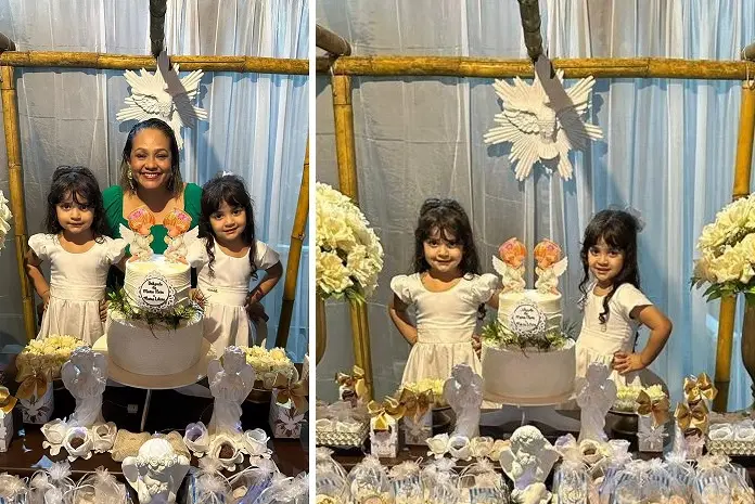 No dia de São João Batista, 23, o casal Antonio Gomes e Raquel Holanda batizou as suas filhas caçulas, as gêmeas Maria Clara e Maria Letícia. Após a cerimônia religiosa, realizada no Núcleo Jardim Real, a família celebrou o momento