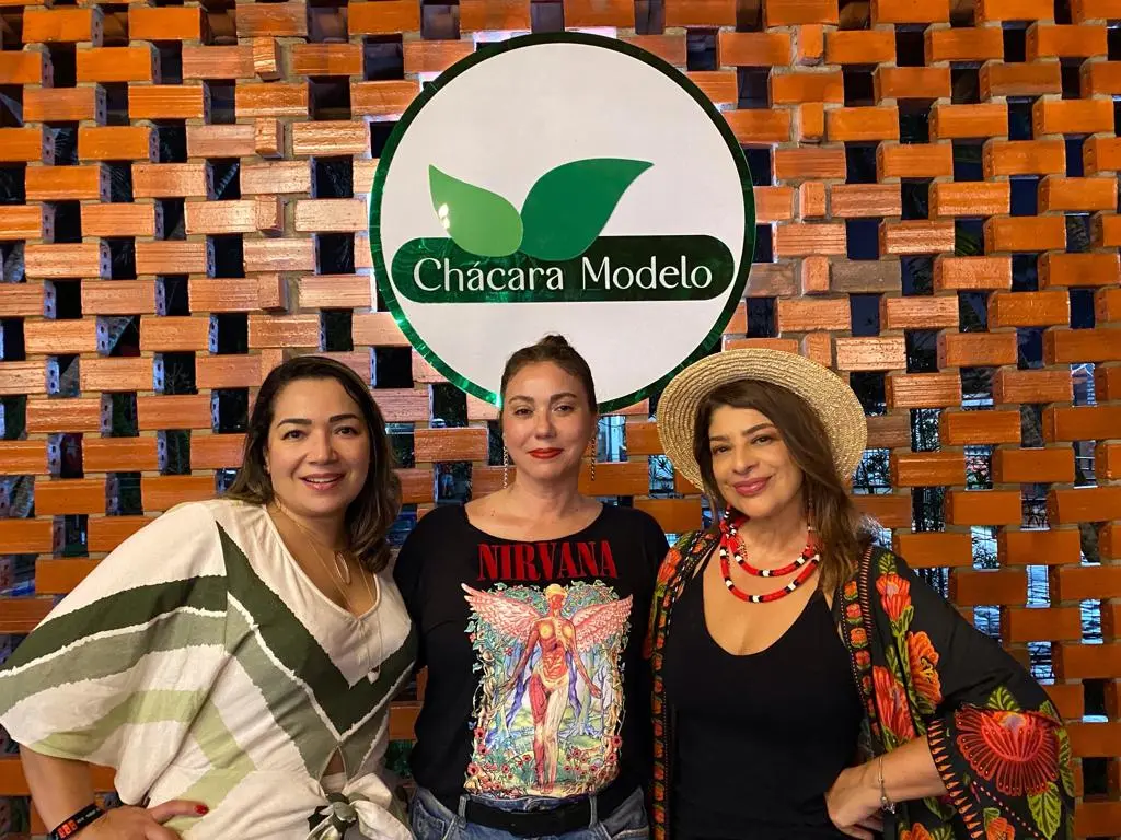 A empresária Sandra Ruiz, uma das responsáveis pelo sucesso do evento, comigo e Giuliana Evangelista