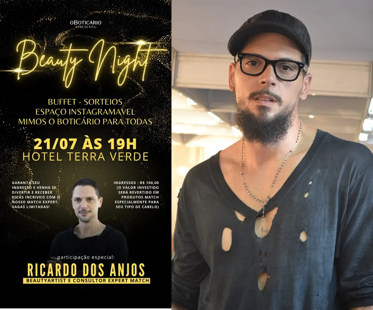 Ricardo dos Anjos, que vai apresentar a nova linha Match e dar diversas dicas para sua beleza ficar ainda mais completa. O valor do ingresso pode ser revertido em produtos da linha Macth. Chama azamigas e se joga nesse evento!
