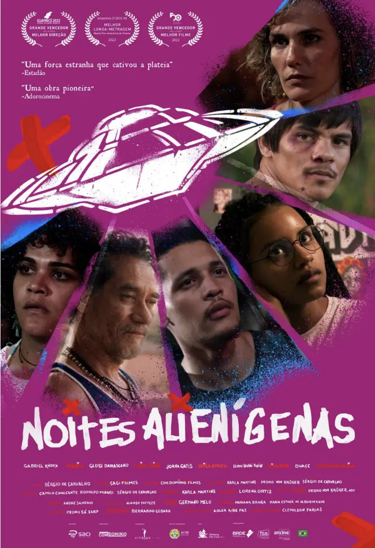“Noites Alienígenas” contou com exibição no Festival de Cinema de Gramado, onde levou quatro prêmios: Melhor Filme, Melhor Ator para Gabriel Knoxx, Melhor Ator Coadjuvante para Chico Diaz, Melhor Atriz Coadjuvante para Joana Gatis, além de uma menção honrosa ao ator Adanilo. Direção de Sérgio Carvalho, que também assina o roteiro, o longa conta com o elenco composto por Gabriel Knoxx, Adanilo, Gleici Damasceno, Chico Diaz, Joana Gatis, Kika Sena e mais.