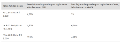Dentro das novas condições de financiamento do programa federal está a redução em 0,25 p.p. das taxas de juros oferecidas para famílias com renda de até R$ 2.640.