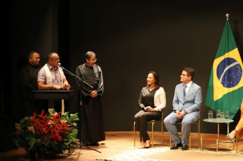 O governador participou de toda solenidade de posse da nova procuradora-geral, inclusive da celebração com o padre Paulo, convidado para um momento especial de espiritualidade com Janete.