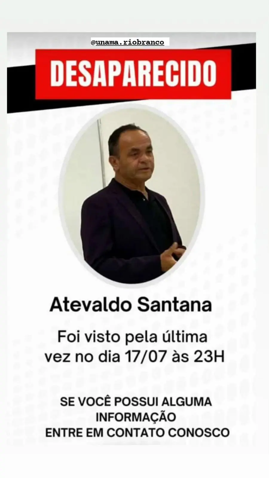 O bacharel em Direito Atevaldo Satana, que está se preparando para obtenção da carteira de advogado junto à OAB (Ordem dos Advogados do Brasil), seção Acre, está desaparecido.