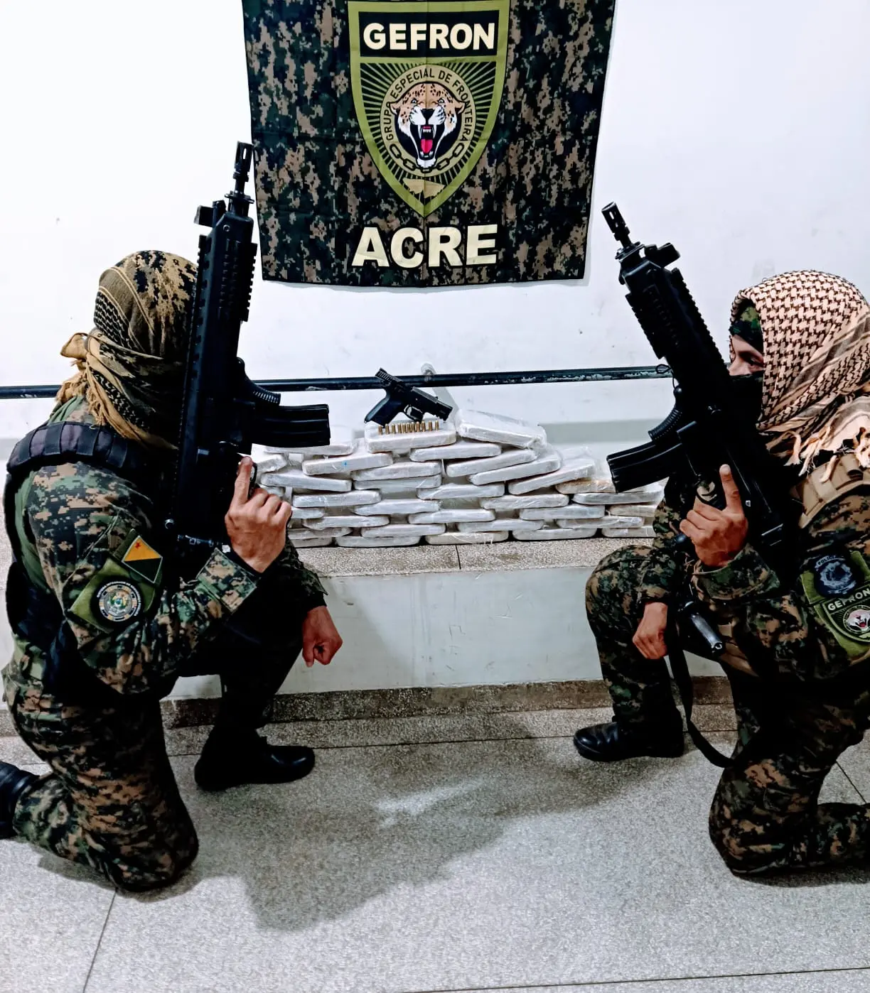 A ação integrada contou com agentes da Polícia Civil, Polícia Militar, Polícia Federal e Gefron. Além da apreensão de 38,530 kg de oxidado de cocaína, também foi apreendida uma pistola 9mm com 11 munições.