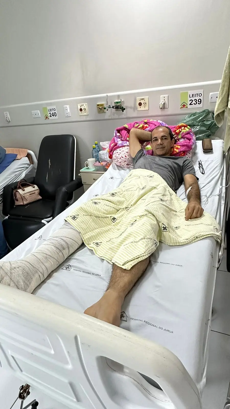 Um médico que também estava em campo, ao perceber a situação, imobilizou o prefeito e ele foi levado em situação de emergência para o Pronto-Socorro do Hospital do Juruá, onde foi recebido pelo serviço médico de ortopedia e submetido à cirurgia. O procedimento durou pelo menos uma hora, com uma incisão que pegou pelo menos 13 pontos. O prefeito já saiu do centro cirúrgico e está num leito e espera receber alta hospitalar neste sábado (29).