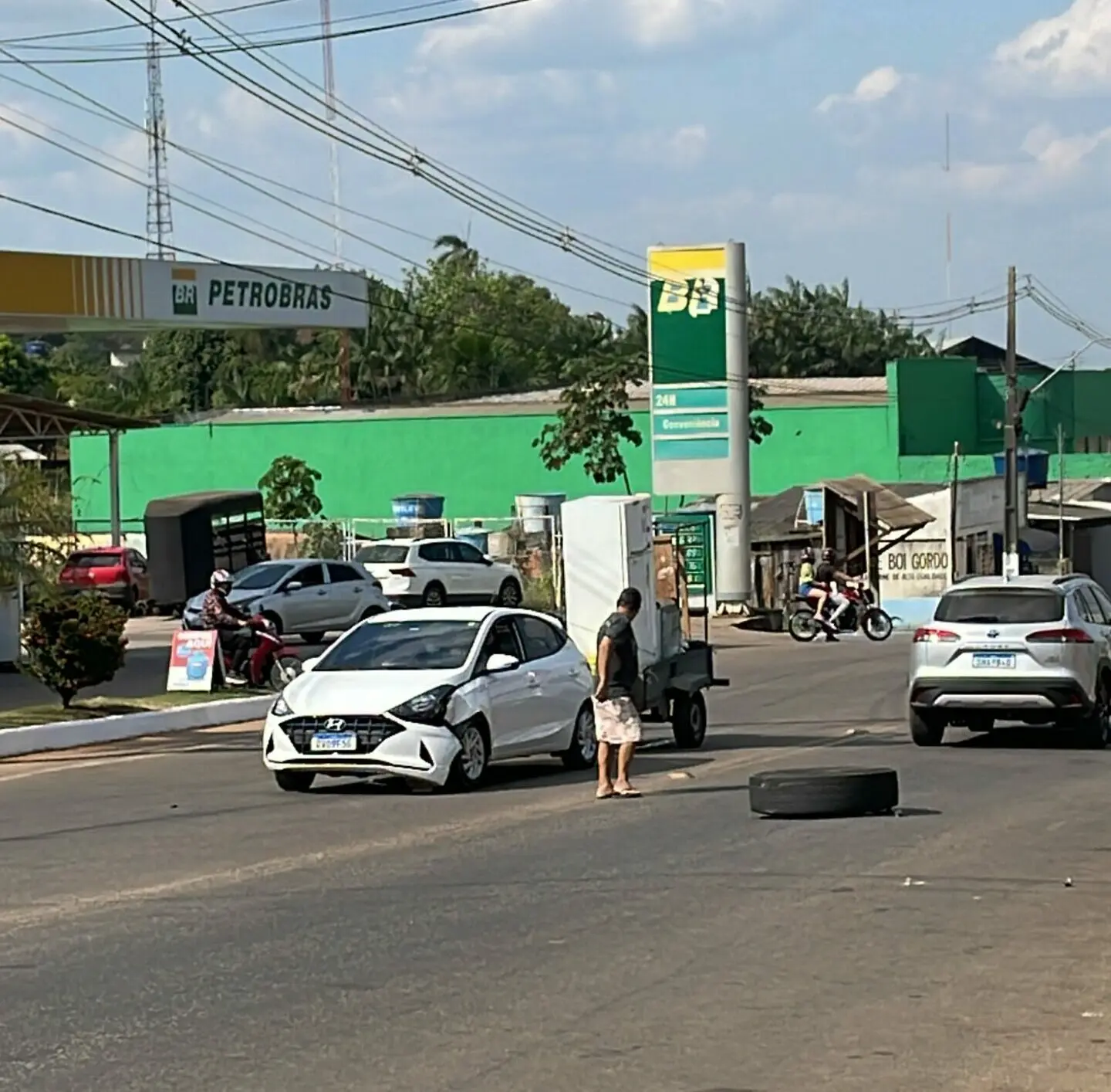 O veículo que sofreu o impacto da roda carregava em uma carrocinha anexada à traseira uma geladeira.