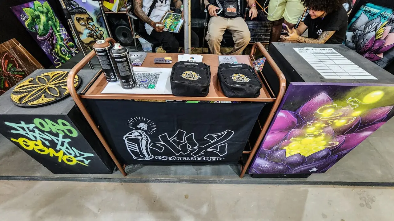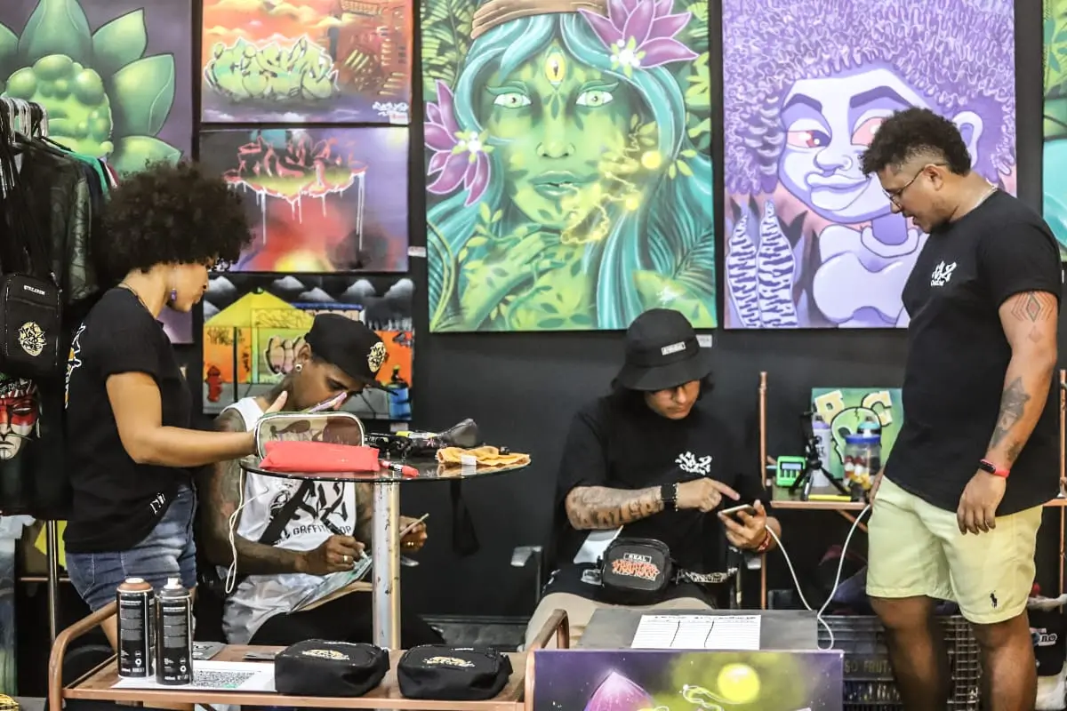 Para Ellayne Cavalcante, que está no espaço com os tatuadores, o objetivo do ambiente é falar sobre economia criativa. “Nós recebemos um convite do Sebrae a participar junto com o parceiro aqui do grafite. Ao falar de economia criativa, nós englobamos os tatuadores, que são microempreendedores e o Sebrae profissionaliza essas pessoas”, diz.