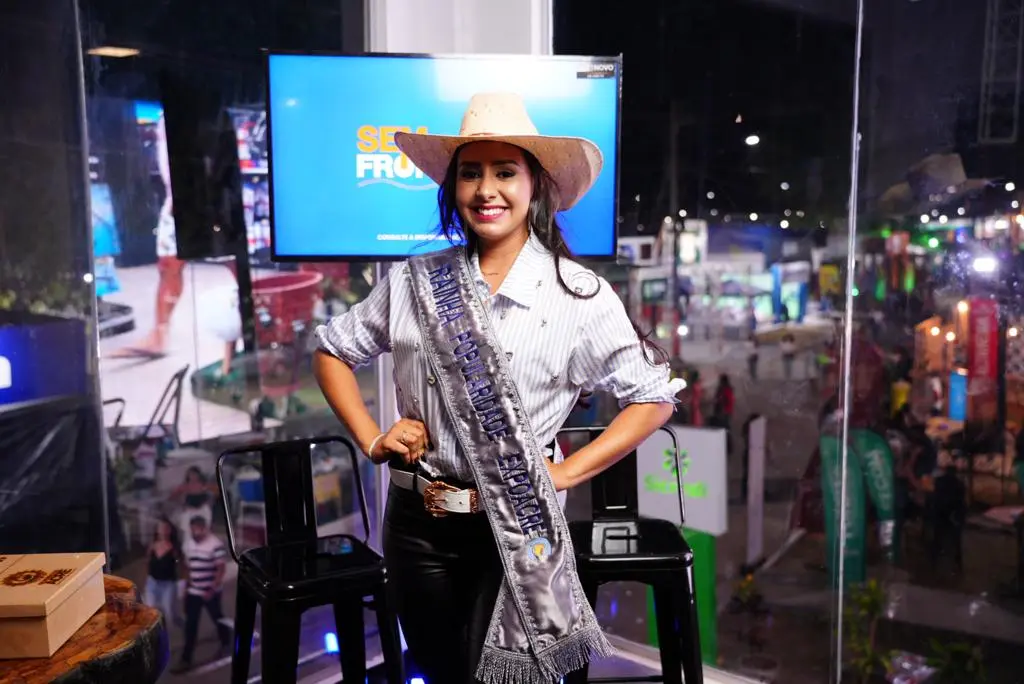 Um dos destaques da noite foi a presença da rainha do rodeio da Expoacre 2023, que esbanjou simpatia e beleza. Com um traje impecável e uma faixa reluzente, a rainha atraiu olhares e foi o centro das atenções ao chegar no estúdio. Sua presença enalteceu ainda mais a importância e grandiosidade do evento, consolidando a tradição do rodeio na Expoacre.