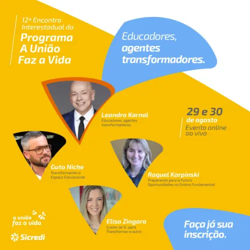Para fomentar e fortalecer essa missão, nos dias 29 e 30 agosto o Sicredi realizará o 12º Encontro Interestadual do programa na região, de forma virtual, com palestras, momentos de troca de experiências e diálogos sobre boas práticas educacionais. A estimativa é que o evento reúna mil educadores e gestores de todo o país.