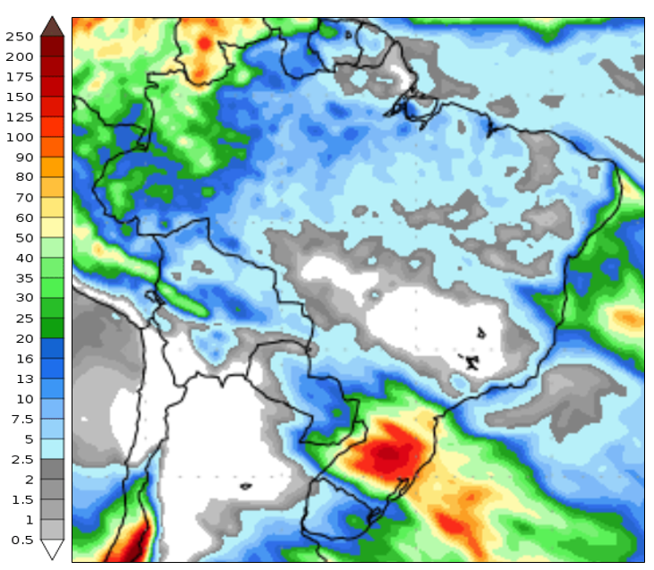 Previsão de chuva para 2ª semana (29/08/2023 a 05/09/2023). Fonte: GFS.