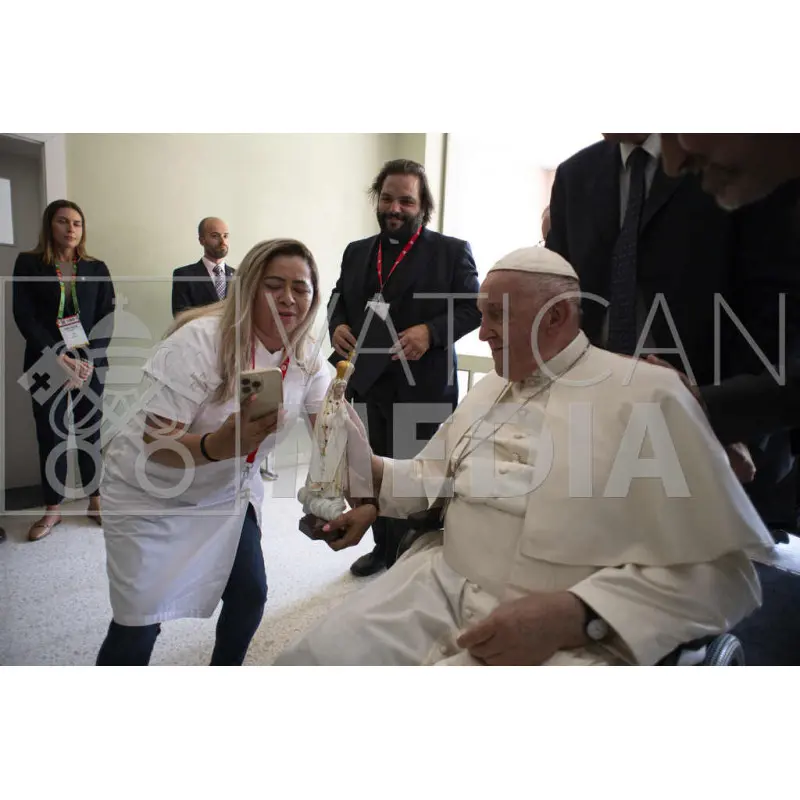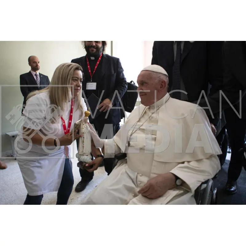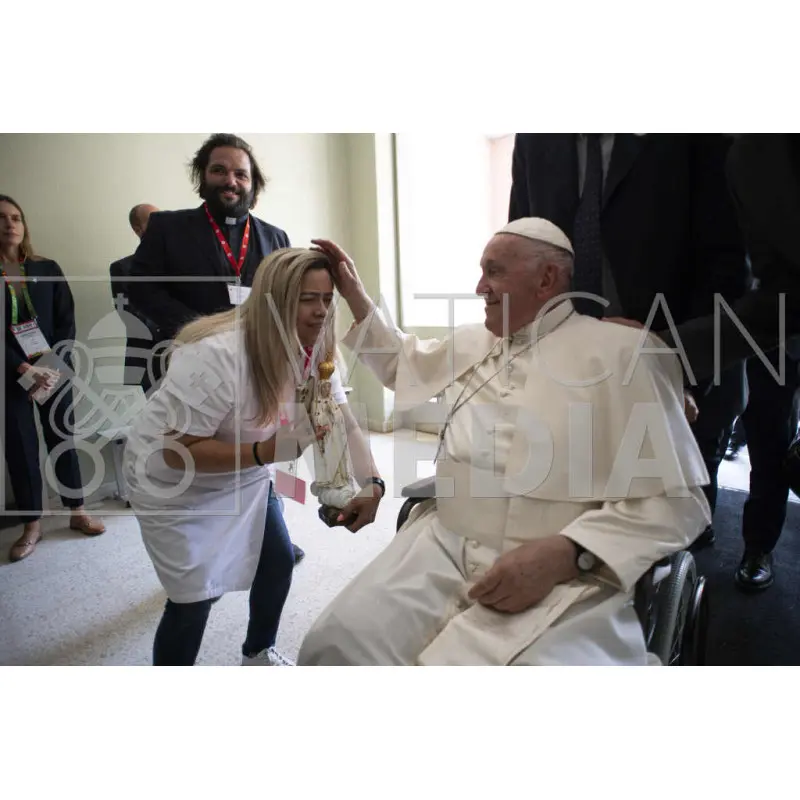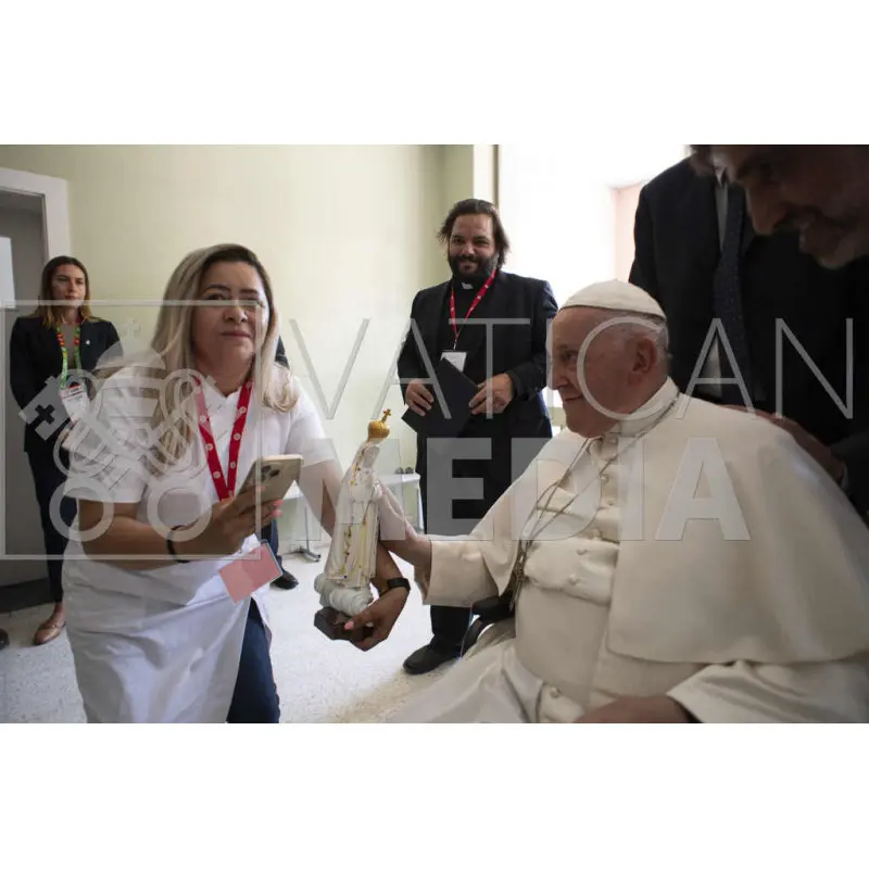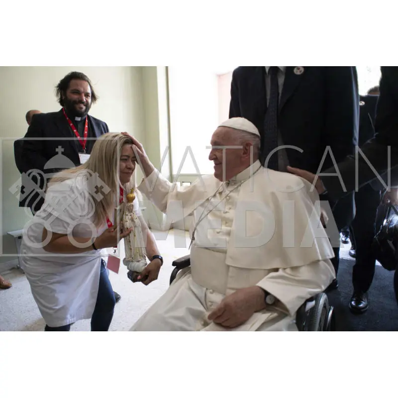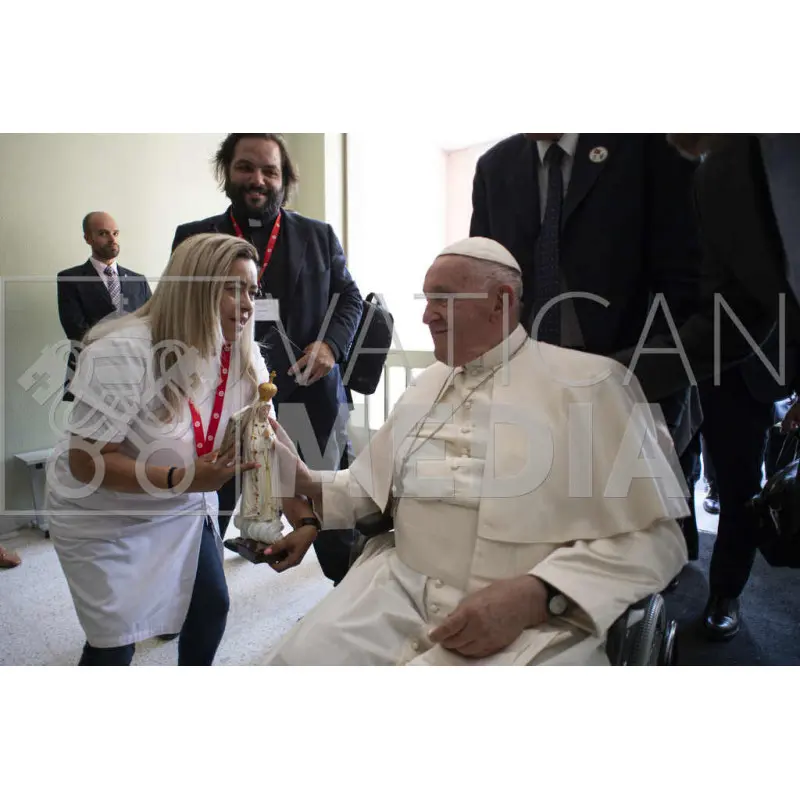 “No mesmo dia, o segurança, a pessoa que anda empurrando a cadeira de roda dele, entrou na sala para deixar o papa lá. Pediram pra eu sair e aguardar um pouco lá fora, daí o segurança dele, o cara que cuida dele, toma de conta dele, sentou do meu lado no banco. Esse cara sentou perto de mim, olhou pro outro, pegou na minha mão e colocou um crucifixo na minha mão. Quando eu abri, olhei o crucifixo. Cara, aquilo ali pra mim foi tudo. Fiquei muito emocionada”.