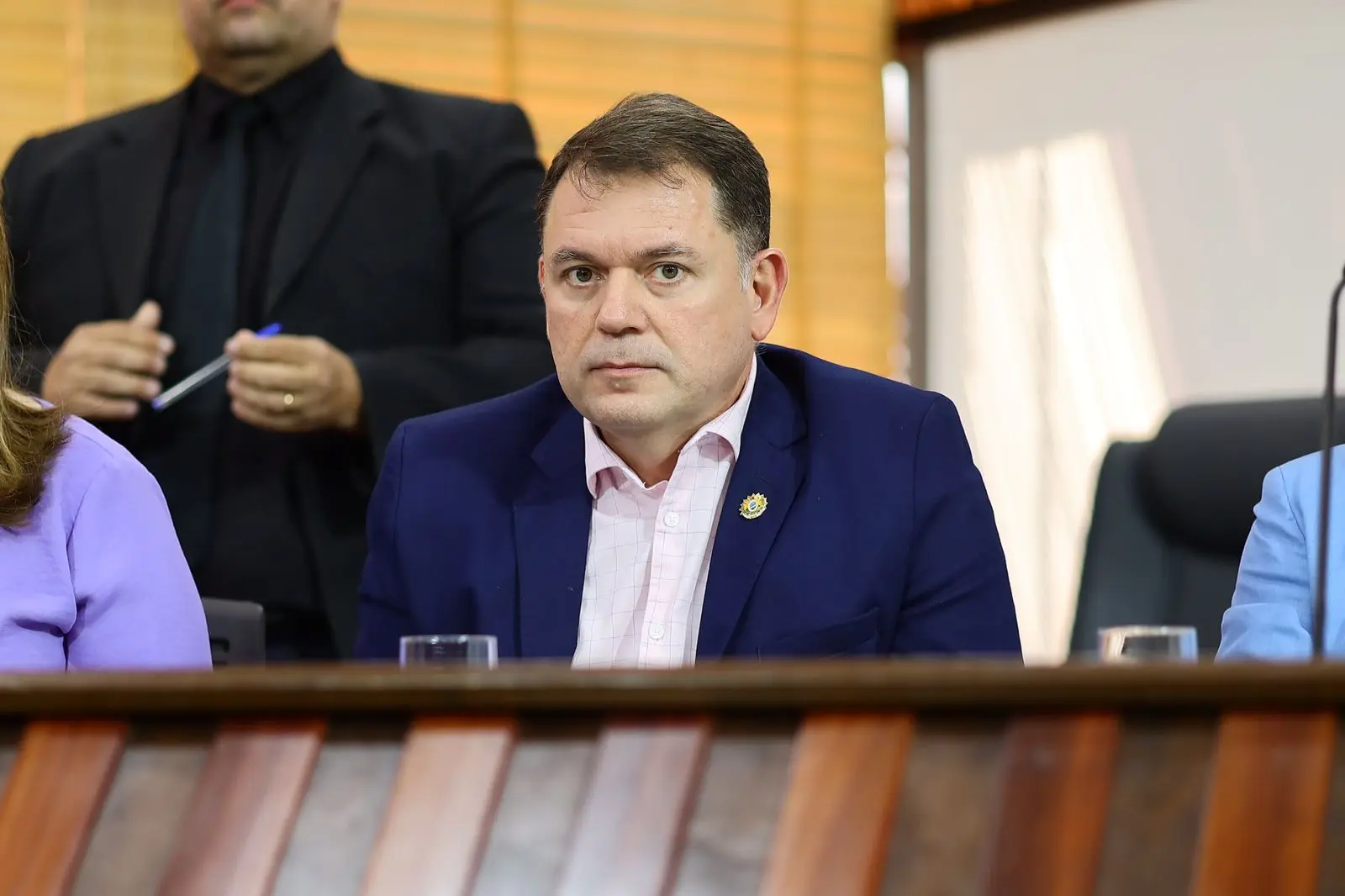Alysson Bestene, secretário de Governo, durante a reunião na Aleac. Foto: Yago Ayache