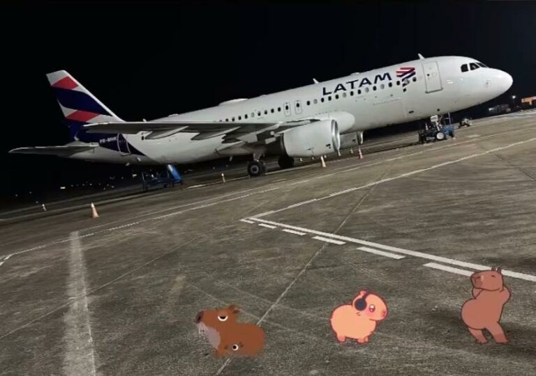 Um passageiro que estava no aeroporto de Rio Branco aguardando o voo da Latam, que sairia na madrugada desta sexta-feira (25) da capital com destino à São Paulo relatou uma situação incomum. O avião precisou cancelar a decolagem após bater em duas capivaras.