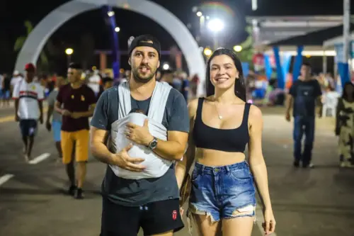 O pai, Igor Guerra, contou que ano passado esteve em Feijó para o Festival do Açaí, mas ainda não conhecia a feijoense Keuli Maciel. Além da família ser formada por pessoas de diferentes lugares, outro fato que chamou atenção é que o casal estava passeando com a filha, a pequena Catarina, de menos de 1 mês.
