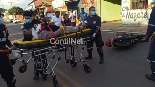 A motociclista Marineide de Souza Almeida, 55 anos, ficou ferida após colidir com um carro na tarde desta quinta-feira (17), próximo a Escola Glória Perez, na estrada Jarbas Passarinho, no bairro Placas, em Rio Branco (AC).