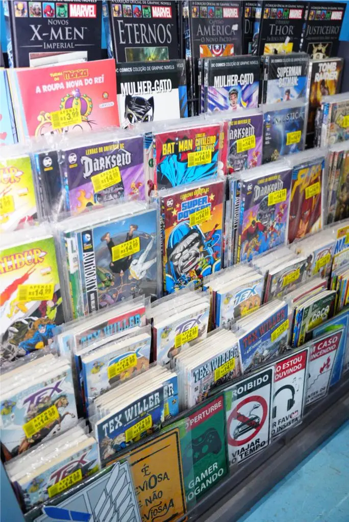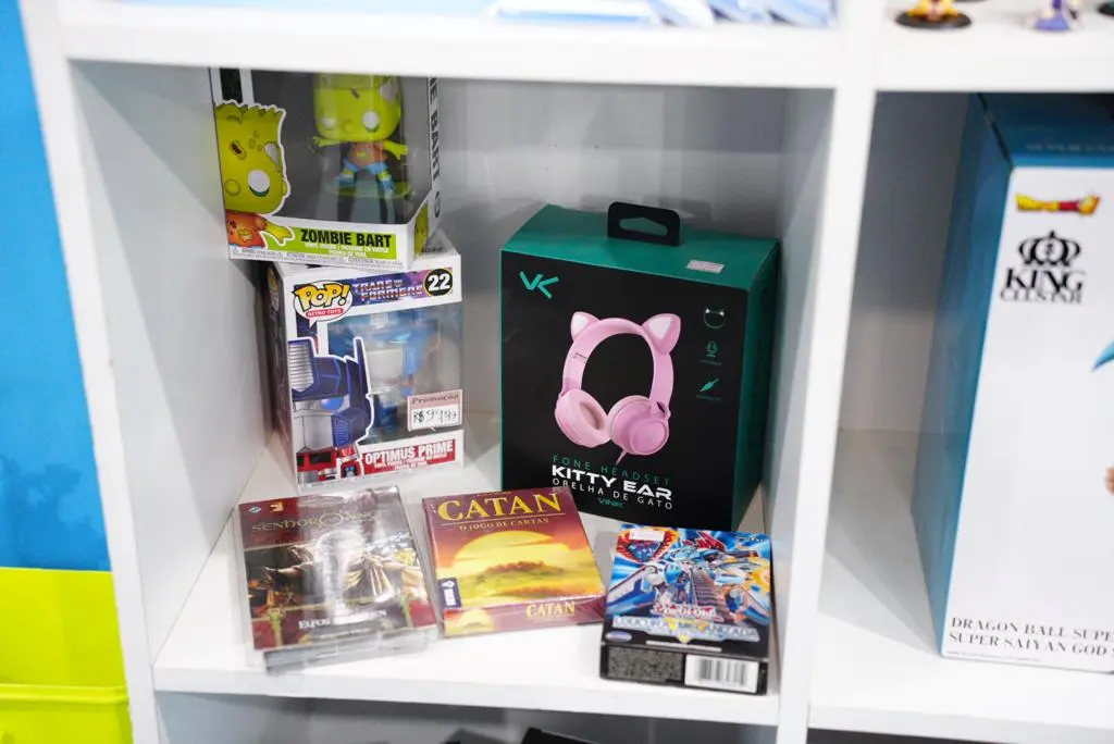 A Action Geeks trabalha com jogos de tabuleiros, colecionáveis e decoração. Além dessa parceria, o Rex também inovou com o cosplay, que chama atenção do público mais jovem. “É a cereja do bolo. Muitos vem pela curiosidade e eu falo que os cosplay é de um mangá e já faço o gancho mostrando os produtos. Eu trouxe muito por uma satisfação pessoal, porque eu gosto, mas as pessoas também procuram por curiosidade é porque muitos tem vergonha de fazer também”, explica.