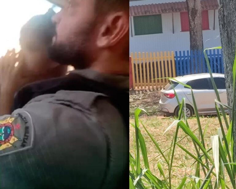 “Estamos armados aqui, tĂĄ entendendo?! Os policiais estĂŁo tudo ali. VĂȘ se consegue chamar o Gazeta Alerta, na humildade”, diz um deles, com a criança ao lado.